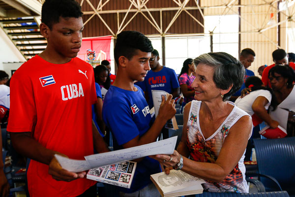 «Esto es un sueño que tenemos todos cuando llegamos a las aulas. Me siento feliz, como mis compañeros. Ahora queda seguir adelante por los que nos han traído hasta aquí, como Maceo, Che y Fidel», dijo a JIT Melissa Alonso Díaz, de nado sincronizado, después de hablar al auditorio en nombre de sus compañeros.
