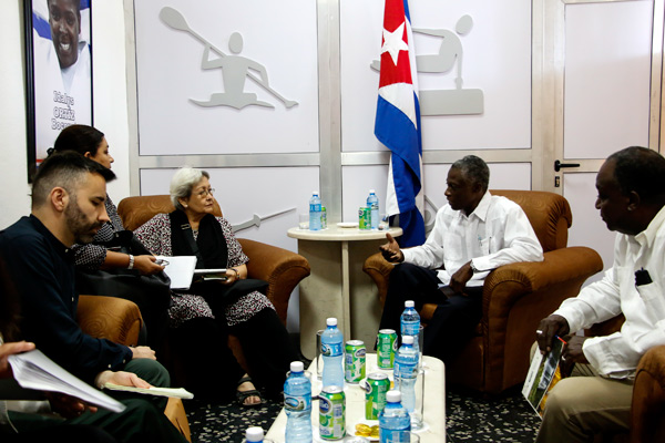 La Habana.- LA EXPERTA independiente sobre derechos humanos y solidaridad internacional, la filipina Virgina Dandan, fue recibida hoy en la sede del Instituto Nacional de Deportes, Educación Física y Recreación (INDER) por su vicepresidente primero, el otrora gimnasta Roberto León Richards.