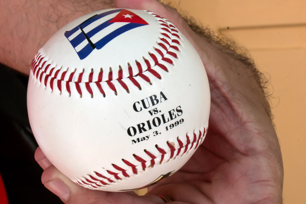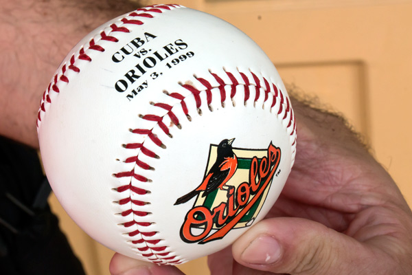 La esférica está firmada por las glorias del béisbol cubano Pedro Luis Lazo, Ariel Pestano, Luis Ulacia y Norge Luis Vera.