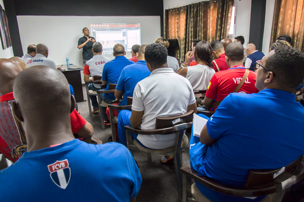 Ofrece las conferencias el joven venezolano Yeivic Jiménez, instructor de la Federación Internacional (FIVB), y las reciben 35 entrenadores y especialistas del más alto nivel de la isla, así como los integrantes del potencial de reserva en diferentes provincias.