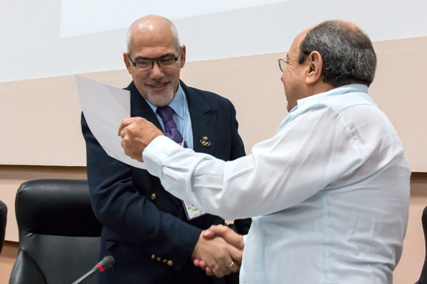 Gil Ramón, viceministro del Ministerio de Educación Superior, reconoció la labor de INDER en ese objetivo presentado ante delegados e invitados en la sala 3 de ese centro sede del cónclave hasta este viernes.