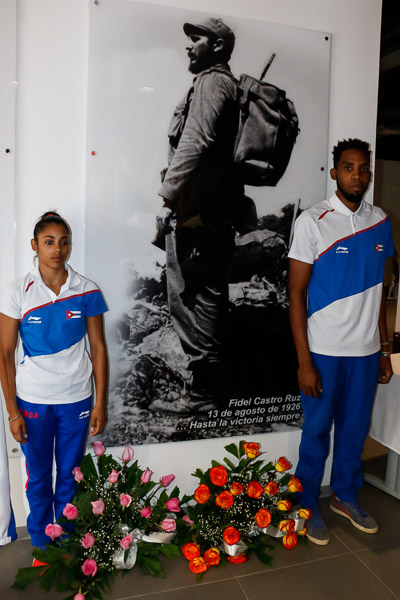 Instantes después el capitán de los gimnastas, Ernesto Aldereguía, reafirmó también la voluntad de victoria de sus compañeros y la fidelidad de los principios que defienden.