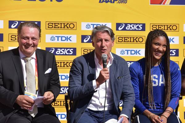 En un muy bien montado espacio en la línea de meta del Estadio de Tampere, Coe bromeó con la prensa acreditada sobre la rapidez de los choferes locales que le permitieron llegar a tiempo a la cita, luego de que su avión se retrasara y destacó los aportes del atletismo al futuro.