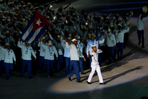 Cabe destacar la ovación dada a los anfitriones, como es lógico, pero también la agradable bienvenida rendida a la delegación cubana, vestida para la ocasión con guayaberas de color azul claro, pantalones y sayas de azul oscuro, y sombreros y pamelas claras.