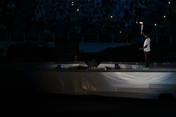Sin perder el hilo conductor de la historia, la ceremonia incluyó el protocolo habitual, a decir el izamiento de las banderas, los juramentos de atletas, entrenadores y árbitros, los discursos oficiales, el desfile de las delegaciones y el encendido del pebetero.
