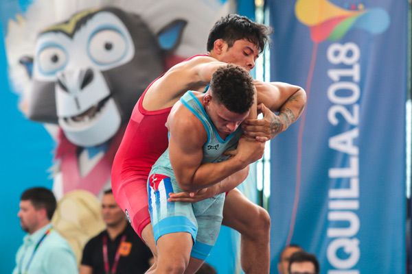 Barranquilla.- CON TRANQUILIDAD a la hora de ejecutar sus desbalances y pases atrás, Cuba consiguió hoy cuatro títulos y una medalla de bronce en el inicio del torneo de lucha de los XXIII Juegos Centroamericanos y del Caribe, con sede en esta ciudad colombiana.