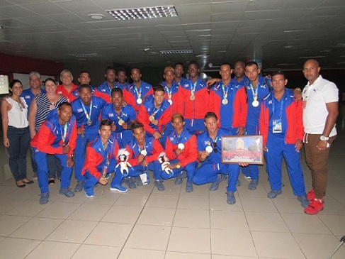 Por Víctor Vitaliano Báez Sánchez. La Habana.- EL EQUIPO masculino de hockey sobre césped ratificó a su regreso a Cuba, que cumplieron junto a las féminas el compromiso de mantener la supremacía en los Juegos Centroamericanos y del Caribe en Barranquilla. En el acto de recibimiento oficial en el Aeropuerto Internacional José Martí, el capitán del equipo Roger Aguilera, agradeció todo el apoyo ofrecido en la villa colombiana y aquí en la Mayor de las Antillas, para obtener tan importante resultado. «Este logro se lo dedicamos a la Revolución y al pueblo cubano, pronto tendremos la Escuela Nacional Antonio Maceo de nuestro deporte en Santiago de las Vegas, restaurada con excelentes condiciones con una nueva cancha sintética, y nuestra actuación es la única forma de agradecer lo que se invierte en nuestro deporte», expresó Aguilera. Al darle la bienvenida, el director general de la Escuela Superior de Formación de Atletas de Alto Rendimiento Cerro Pelado, Yasser García, resaltó la dignidad y los méritos de estos atletas de ambos sexos que durante varias décadas han retenido la corona en la región. Este grupo que regresó a la patria también recibió el cuadro con la foto final en el abanderamiento de la delegación cubana en el Cementerio Santa Ifigenia, que los identifica “Colectivo de la Dignidad”. La selección cubana de hockey conquistó el título en un tenso partido ante su similar de México. Este deporte ha ganado todas las coronas centrocaribeñas desde su incursión en La Habana en 1982.