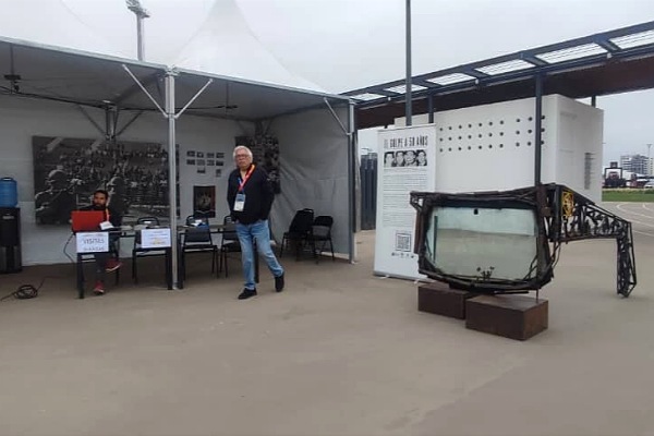 Nos despedimos ante su carpa blanca, muy cerca del Estadio y la obra Los espejuelos de Allende. Al fondo podía leerse el mensaje más repetido y estremecedor de todos: «Un pueblo sin memoria es un pueblo sin futuro».