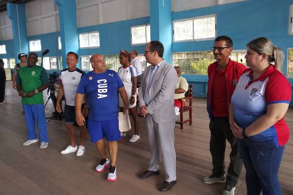 Junto a Gisleidys Sosa Cabrera, directora de Relaciones Internacionales del Inder, los visitantes intercambiaron con exponentes de las luchas, baloncesto, judo y levantamiento de pesas.