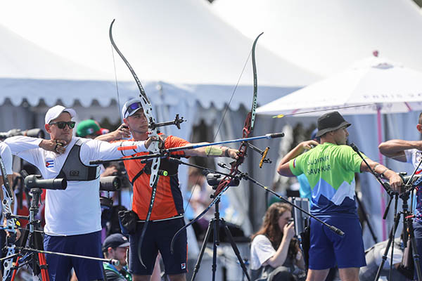 La tarde calurosa le hizo recordar a la Isla. Llegó tranquilo a la Explanada de los Inválidos, tomó su puesto a 70 metros de la diana 22… y flecha a flecha fue avanzando hacia su objetivo: clasificarse en una buena posición para la ronda de matches: lo hizo con nota final de 699 puntos (lugar 21).