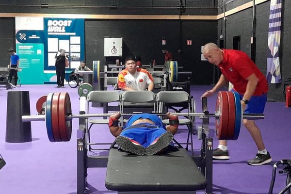 Para eso se entrena en los pedidos de la villa paralímpica bajo la tutela de su entrenador, Ramón Martínez, quien le corrige los movimientos técnicos a la vez que le sirve de aliento.