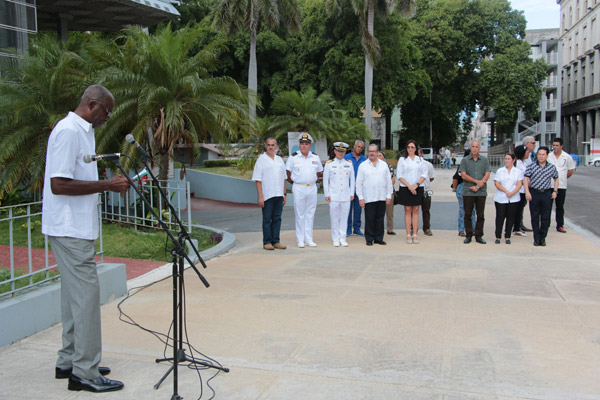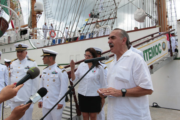 A él entregaron la flama los atletas cubanos para ser transportada por el Buque Escuela Cauhtémoc, de la Armada de los Estados Unidos Mexicanos.