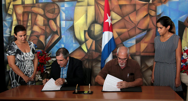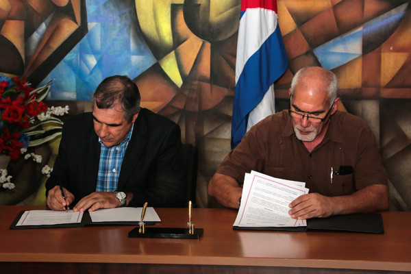 La Habana.- UN CONVENIO de colaboración suscribieron en el Salón de Actos del coliseo de la Ciudad Deportiva los doctores Eduardo Martínez Díaz y Antonio E. Becali Garrido, presidentes de la Organización Superior de Dirección Empresarial (OSDE) BioCubaFarma y del Instituto Nacional de Deportes, Educación Física y Recreación (Inder), respectivamente.
