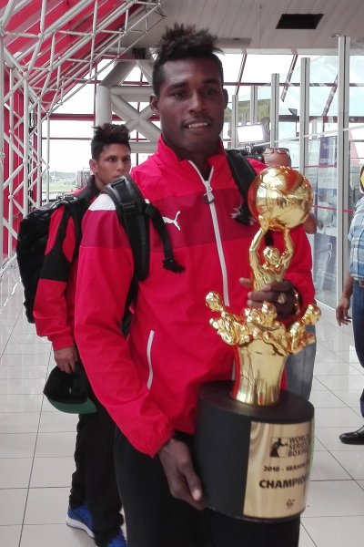 La Habana.- PORTADORES de la satisfacción que genera provocar aplausos entre los suyos arribó hoy a la patria el equipo Domadores de Cuba, recién coronado en la VIII Serie Mundial de Boxeo y recibido por el presidente del Inder, Dr. C. Antonio Becali Garrido.