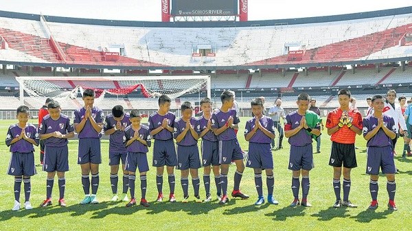 Se les vio primero en la ceremonia de inauguración y ayer jugaron un emotivo partido con la selección sub-13 de la franquicia del River Plate, en el mítico estadio Monumental, concluido con empate 3-3.