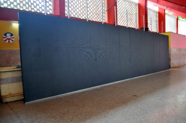 Santiago de Cuba.- EL MONTAJE de una pantalla electrónica de fabricación vietnamita en el estadio Guillermón Moncada figura entre las acciones de modernización que se acometen en algunas instalaciones deportivas de esta ciudad.