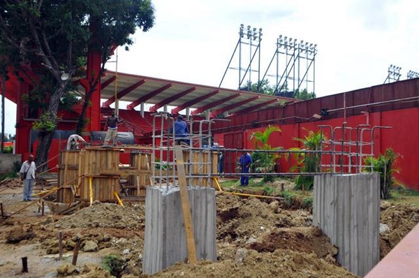 Desde hace varias semanas, en el fondo derecho del coloso de la Avenida de las Américas, fundado en 1962, se prepara el terreno y se funden los seis pilares de hormigón sobre los que estará ubicada la pieza de 12 metros de ancho por cuatro de alto, según dio a conocer a JIT el subdirector provincial de deportes, Jaime Coca Vidal.