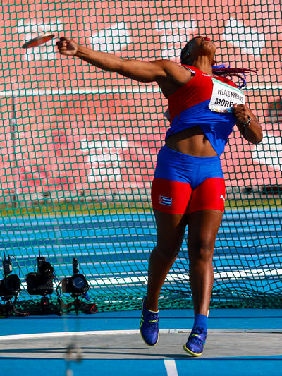 La rusa Viloletta Ignatyeva había comenzado la prueba con 54,28 m, que la situaban primera, pero la antillana la convirtió en subtitular con cifra de 107,79, en tanto tercera se ubicó la turca Ozlem Becerek con 103,86, según el inusual sistema de competencia utilizado, con cuatro tiros el día 11 y otros tantos este domingo.