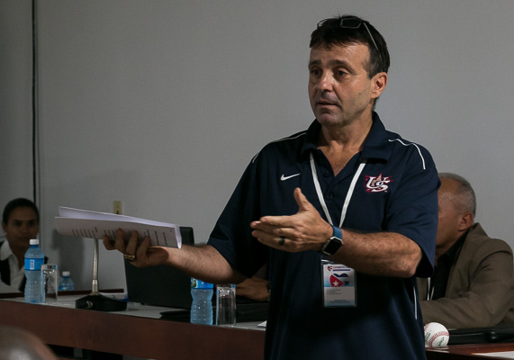 La Habana.- EN EL marco del Congreso Internacional Cubamotricidad 2018 se desarrolló hoy una clínica de béisbol con la presencia de Peter Caliendo, entrenador estadounidense y miembro de la comisión técnica de la Confederación Mundial de Béisbol-Softbol (WSBC).