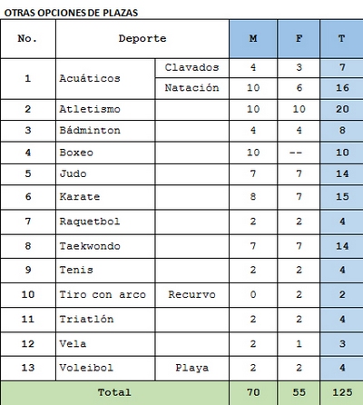 Lo diseñado en materia de incrementos asigna más responsabilidades al atletismo, todavía en condiciones de añadir boletos, y prevé sólidos aportes de otras disciplinas de rango como boxeo, judo y taekwondo.