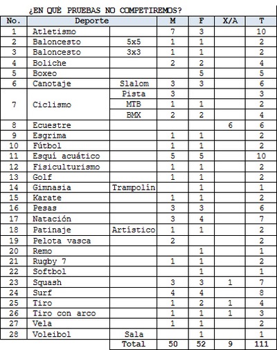 Las últimas plazas llegarán ese propio mes, destinadas al atletismo y el tenis, que avalarán por marcas mínimas y ranking, respectivamente.